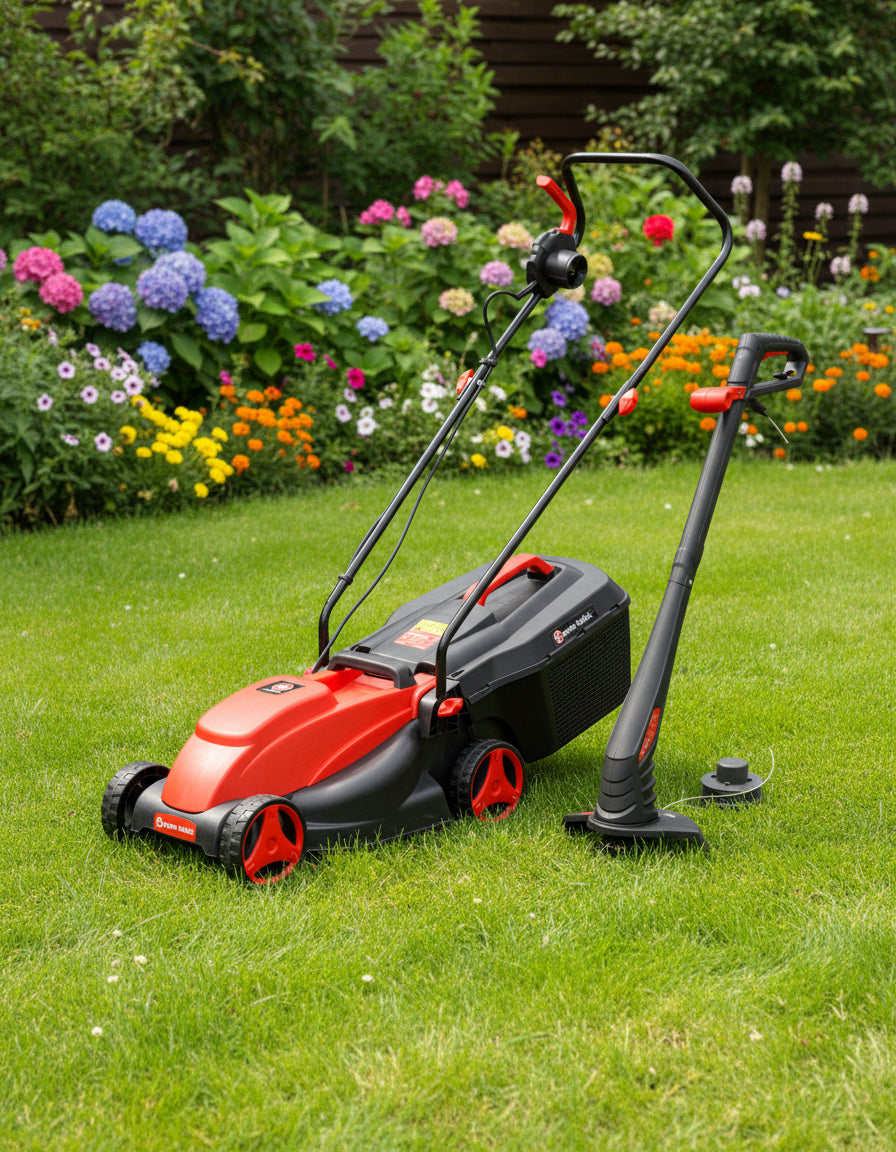 This 2-piece pack consists of an electric lawn mower 1300W and a 250W grass trimmer.