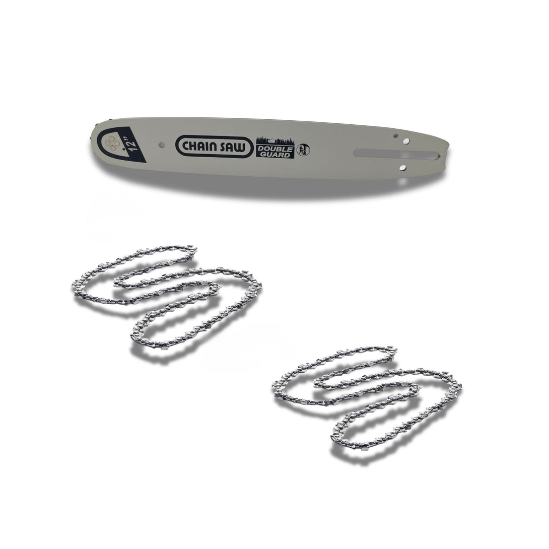 12'' (30 cm) guide bar + 2 chains with 45 links for chainsaw – Compatible with CHESTER and other models