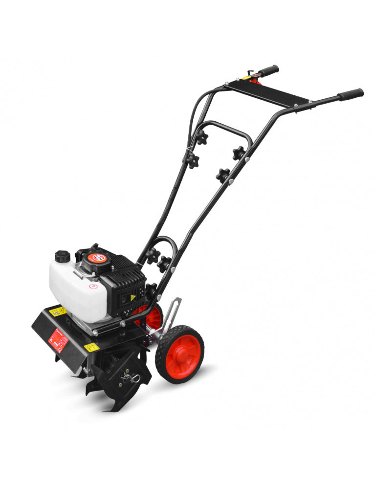 Its 51.7cc 2-stroke engine delivers all the power you need, while its 25 cm working width with 4 blades ensures a clean and precise tilling performance.