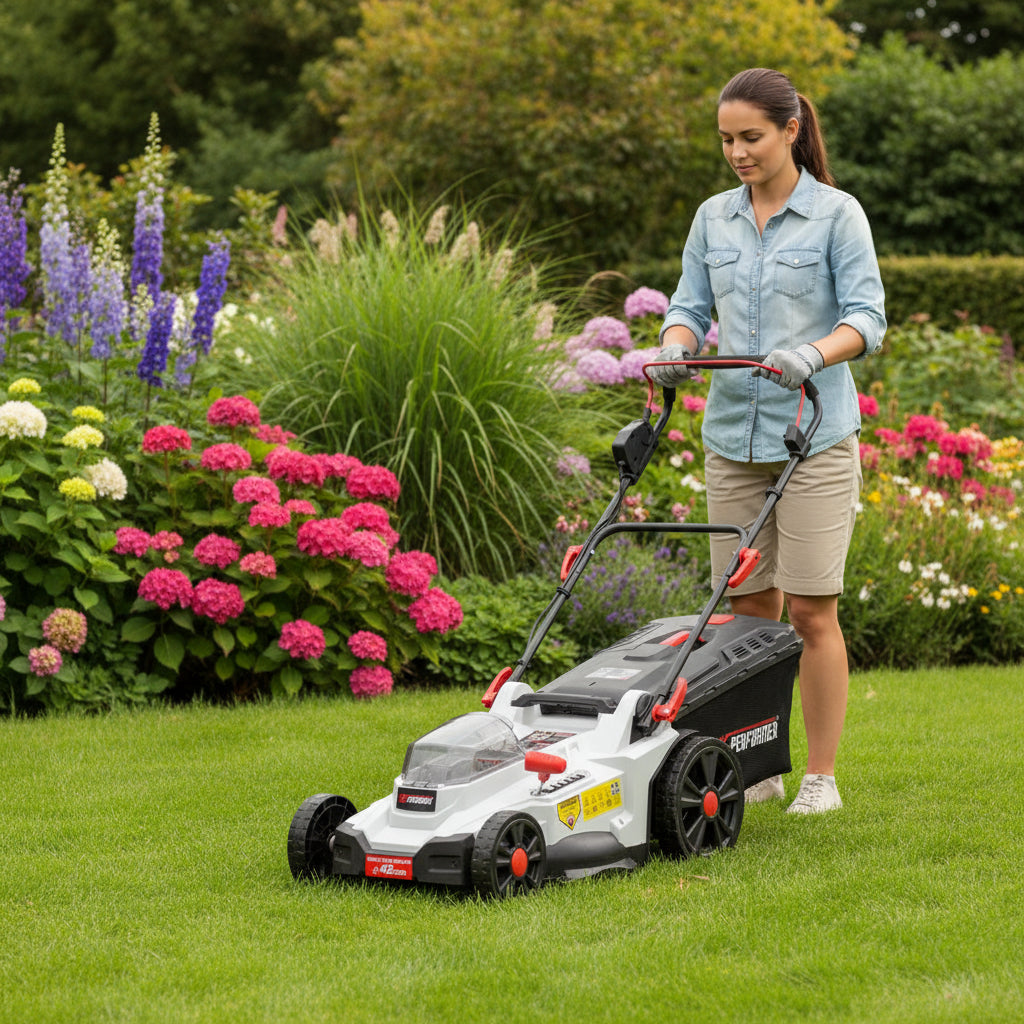 Designed for the maintenance of small lawns, the X-Performer cordless lawn mower is equipped with an induction motor that ensures a longer lifespan and reliable performance. With its 43 cm cutting width and 35 L grass collector, it combines efficiency and maneuverability for optimal lawn care.