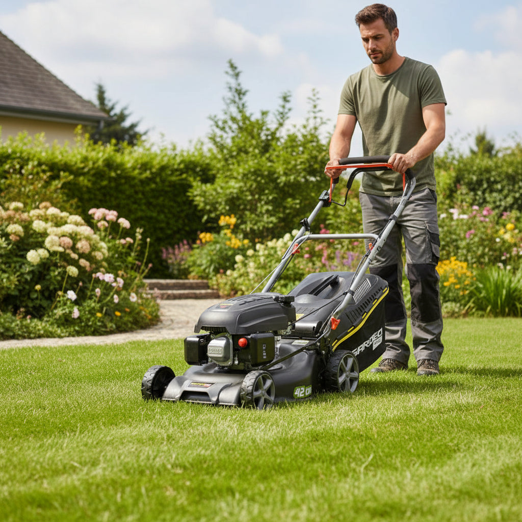 This 144.3 CC self-propelled petrol lawn mower is ideal for mowing small to medium-sized lawns. With a 42 cm cutting width and a 45-liter grass collector, it allows you to mow large areas quickly.