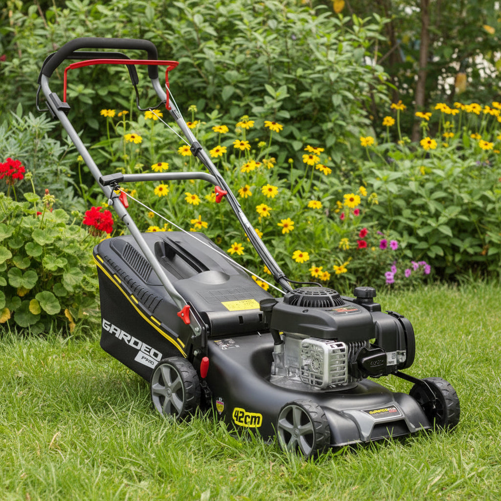 This 125 cc self-propelled gas lawn mower from Gardeo Pro combines lightness and maneuverability, making it extremely easy to use. Equipped...