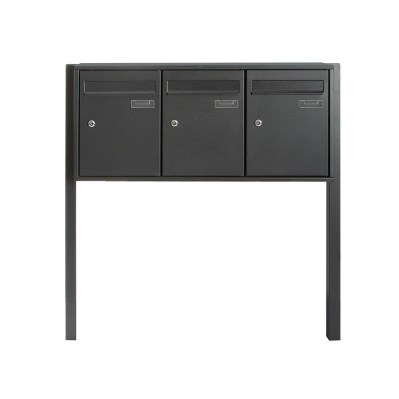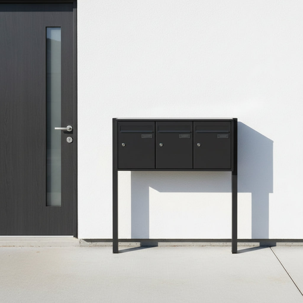 Vrijstaande brievenbus met meerdere vakken mat zwart – 3 compartimenten – roestvrij staal