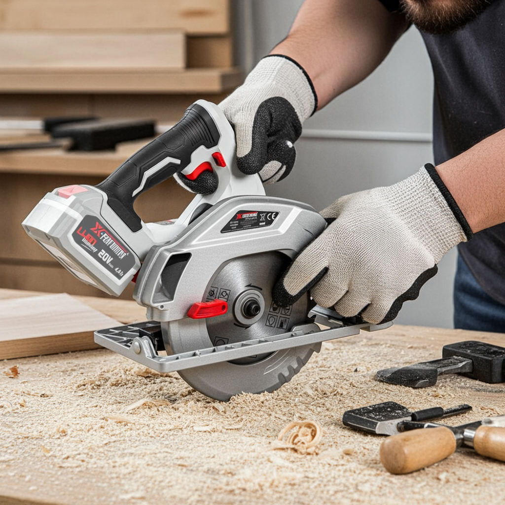 De X-Performer 20V accu-cirkelzaag is ideaal voor al uw zaagklussen, zowel voor dunne als dikke planken. Zonder netsnoer biedt ze u volledige bewegingsvrijheid en groot gebruiksgemak. Ze maakt het mogelijk om afschuiningen tot 45° te zagen en moeiteloos tot 60 mm zaagdiepte te bereiken.