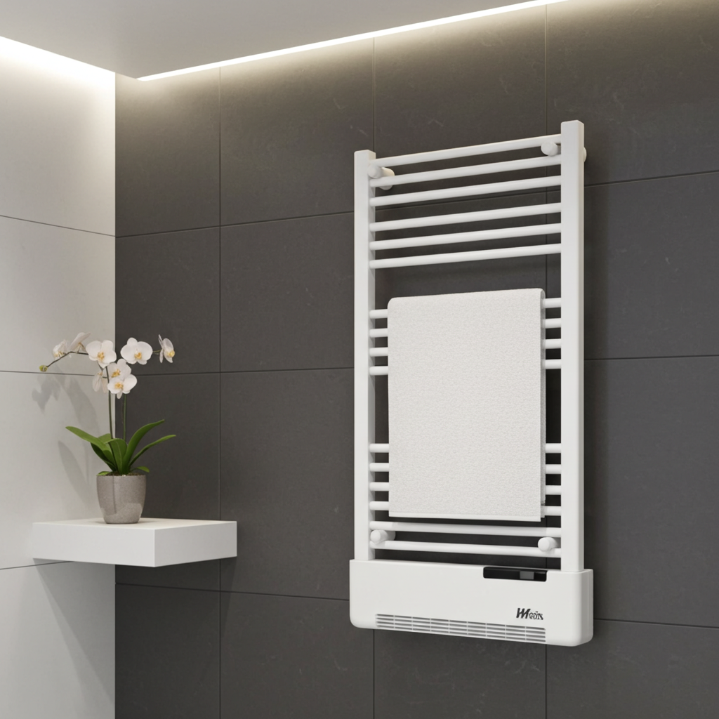 Deze handdoekradiator van het merk Warm Tech, uitgerust met de vloeistoftechnologie en een ventilator van 1000W, is een efficiënte en elegante oplossing voor uw badkamer. Het compacte en strakke design past perfect bij verschillende interieurstijlen. Als een 2-in-1 toestel kunt u er niet alleen uw handdoeken drogen en verwarmen, maar ook uw badkamer opwarmen dankzij de krachtige ventilator.