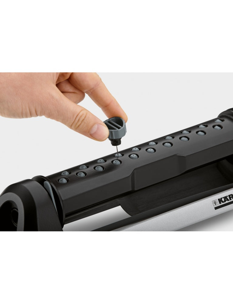 Son atout exclusif : le système anti-éclaboussures signé Kärcher. Grâce à sa plaque rétractable, vous réglez l’arroseur sans vous mouiller. De plus, un outil de nettoyage des buses intégré prolonge la durée de vie de l’appareil et garantit une efficacité optimale à chaque utilisation.