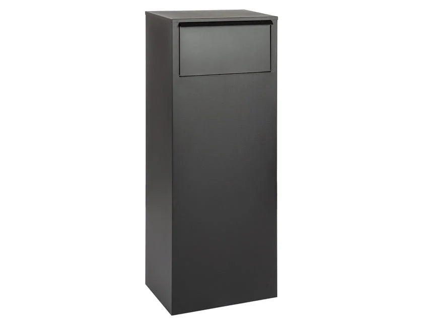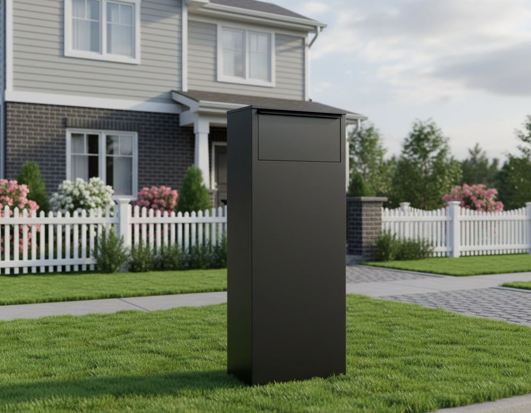 Sa structure en acier laqué sablé noir mat est résistante aux intempéries et aux UV, ce qui garantit une durabilité remarquable en extérieur. Cette colonne à colis est équipée d’un clapet automatique anti-retour antivol et d’une fermeture muette, permettant aux paquets de tomber à l’intérieur sans possibilité d’être récupérés par une tierce personne, tout en conservant un usage discret.