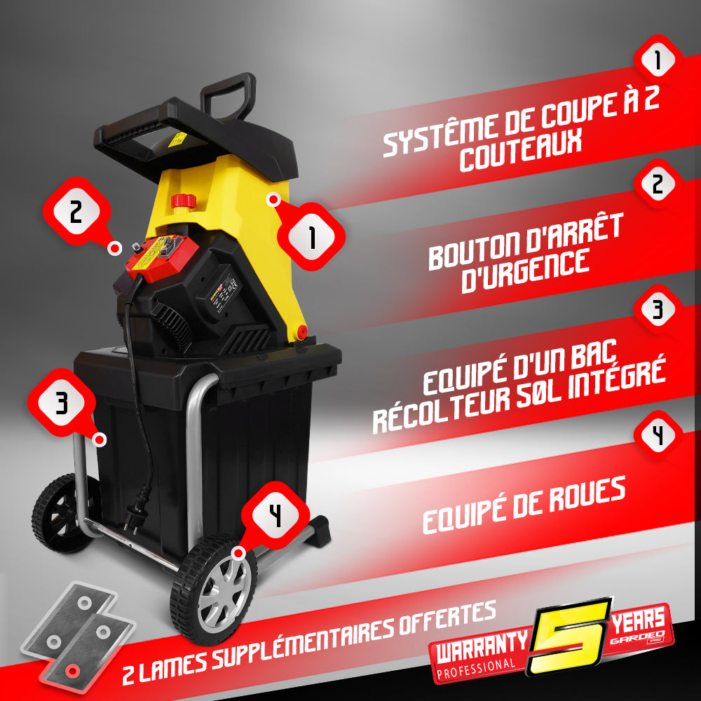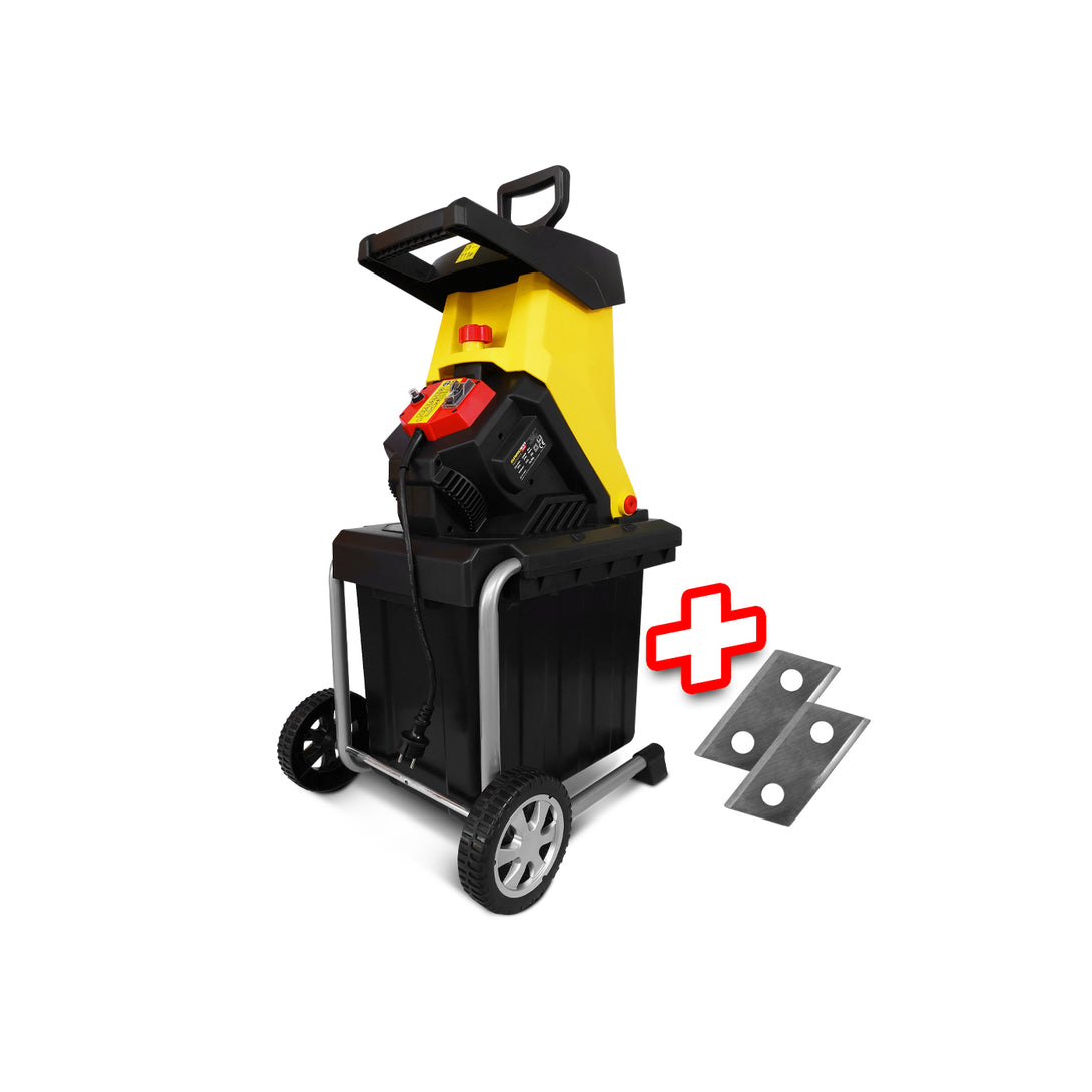 Broyeur de végétaux électrique 2500W - diamètre de coupe 40 mm- bac de 50 L - 2 lames offertes