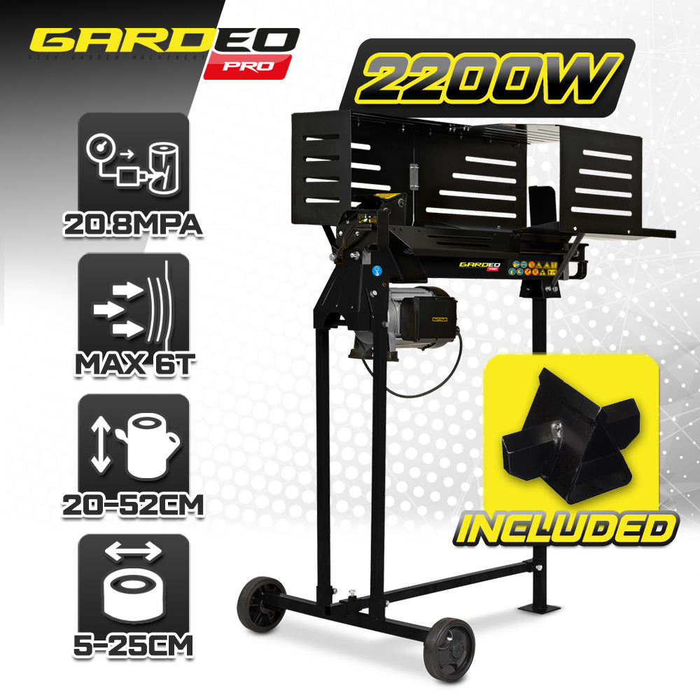 Fendeur de bûches horizontal 6T – 2200W – Support sur pieds et coin 4 voies – Enclume en acier