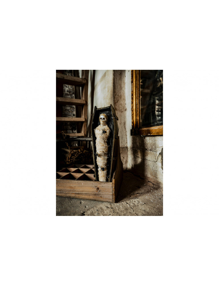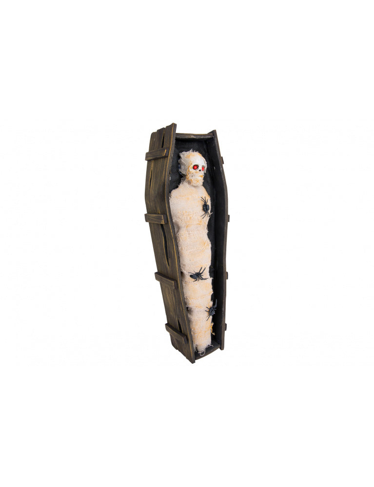 Article | MOMIE DANS UN CERCUEIL AVEC LUMIÈRE MARRON 45X14XH8CM PLASTIQUE EXCLUT 3 PILES AAA |