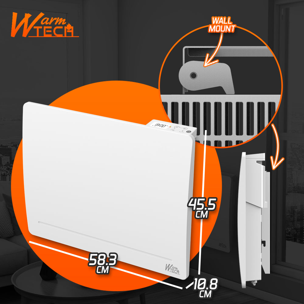 Radiateur à inertie fonte mural 1000W - blanc - programmable LCD
