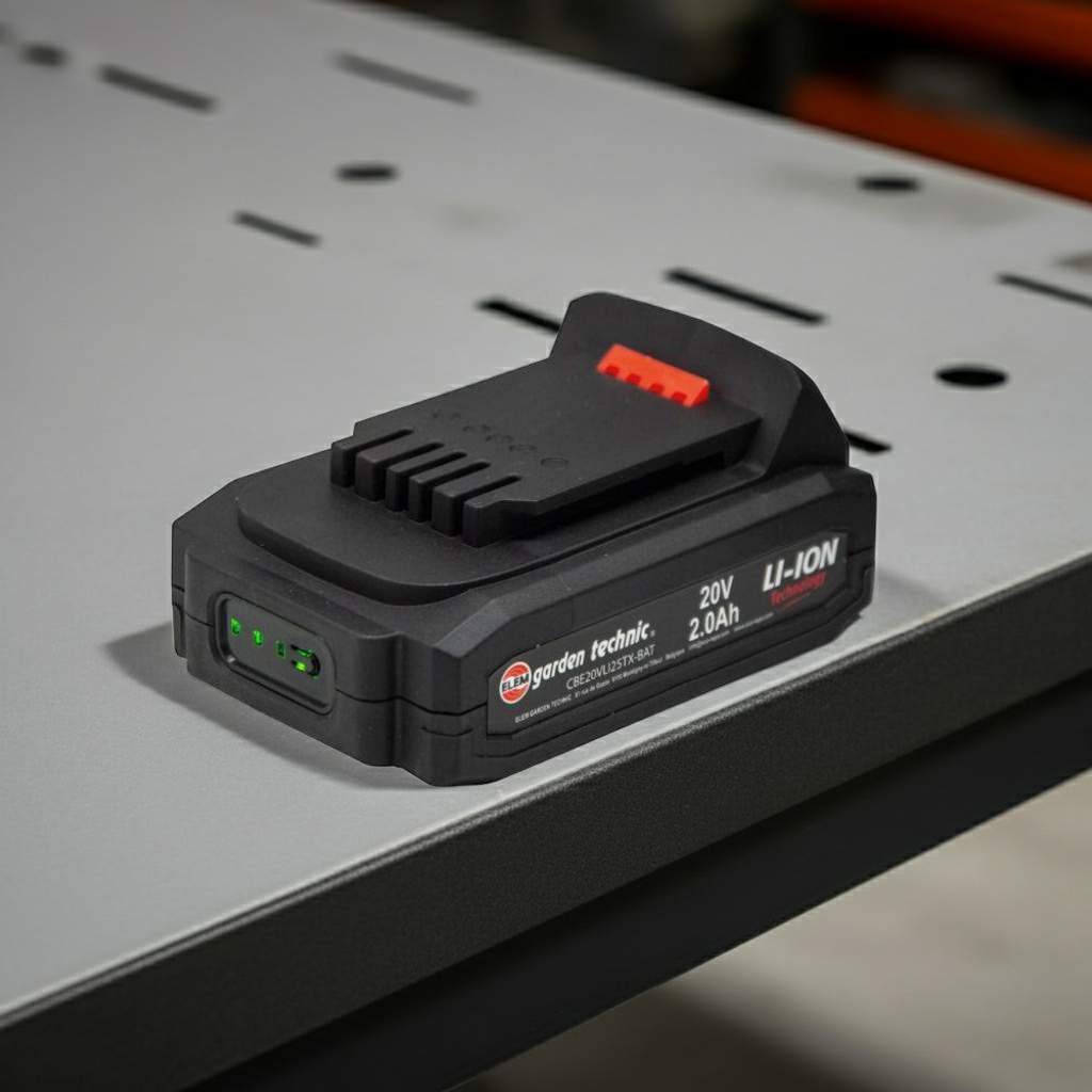 Compatible avec plusieurs appareils de la gamme Elem Garden Technic 20V, notamment le coupe-bordure CBE20VLI25T et le taille-haie THE20VLI-510, elle vous permet de passer facilement d’un outil à l’autre tout en conservant la même batterie, garantissant ainsi un gain de temps et une utilisation pratique au quotidien.