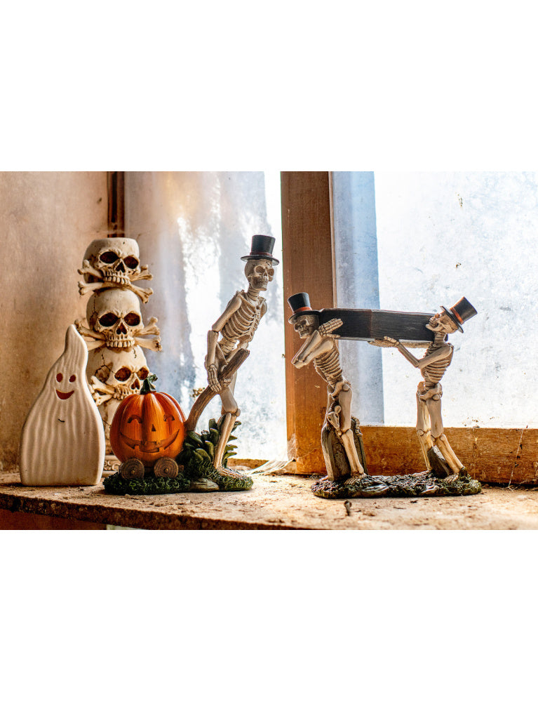 Frissonnez de plaisir avec nos deux squelettes portant un cercueil, l'accessoire idéal pour toute décoration d'Halloween ! Fabriqués en polyrésine...