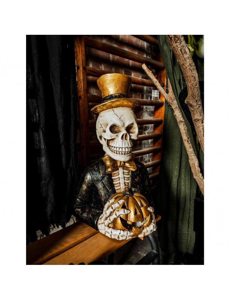TETE DE MORT GOLDEN HAT PUMPKIN NOIR 38X 32XH60CM