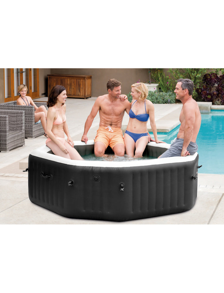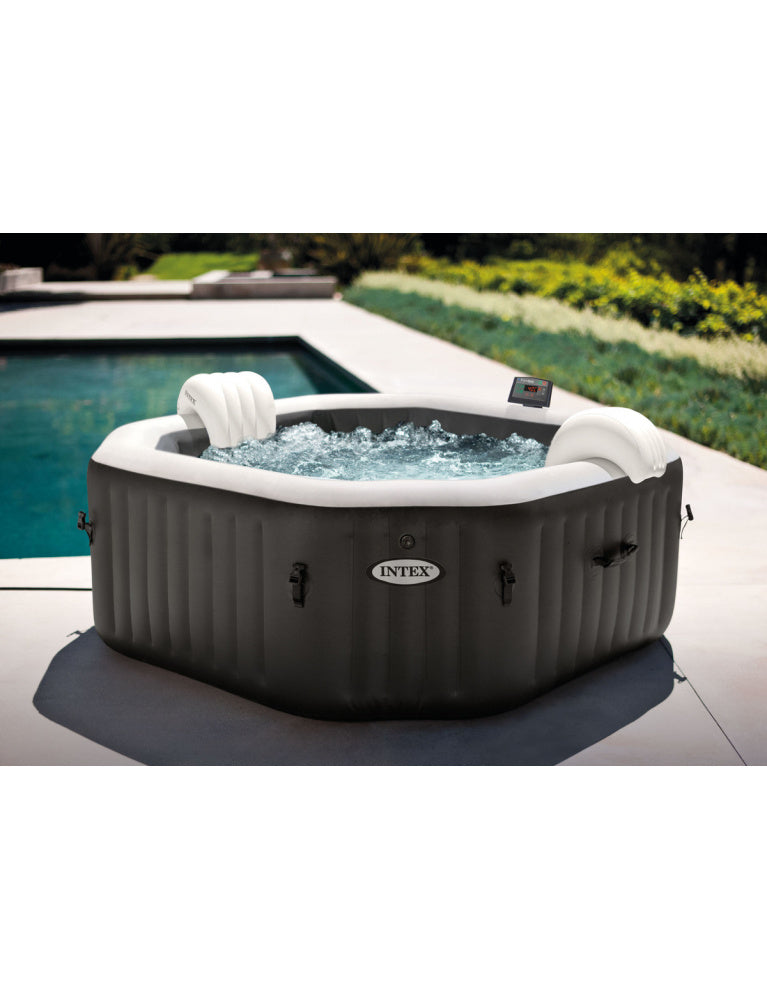 Le spa Jets & Bulles Deluxe 4 places Intex, s'inscrit dans la lignée des produits haut de gamme de la gamme PureSpa d'Intex. Son design octogonal épuré et sophistiqué se distingue et s'harmonise parfaitement avec n'importe quel espace extérieur.