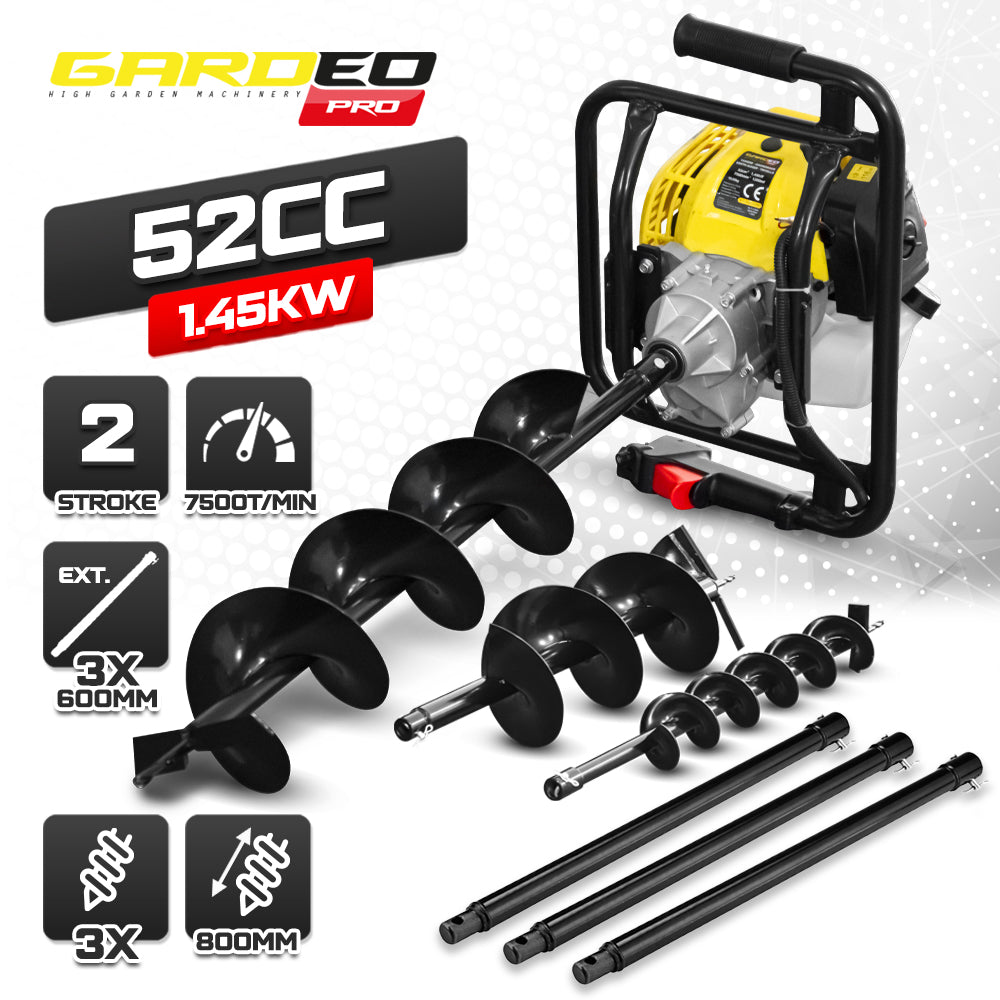 Tarière thermique 52cc avec 3 mèches et 3 rallonges – moteur 2 temps puissant