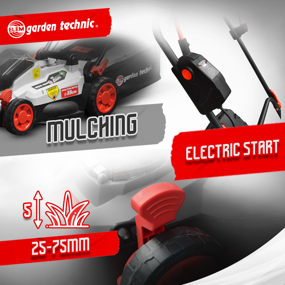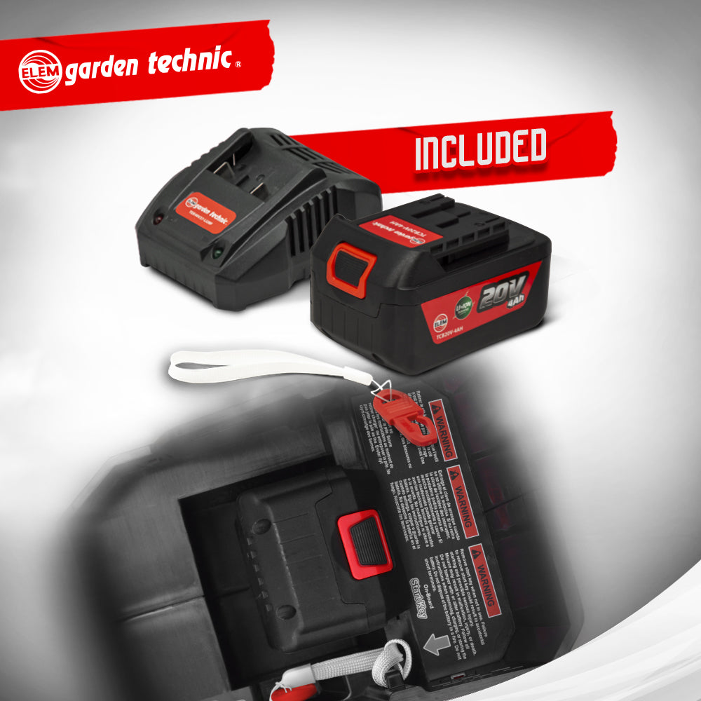 Tondez votre pelouse sans contrainte grâce à cette tondeuse sur batterie 20V de la marque Elem Garden Technic.